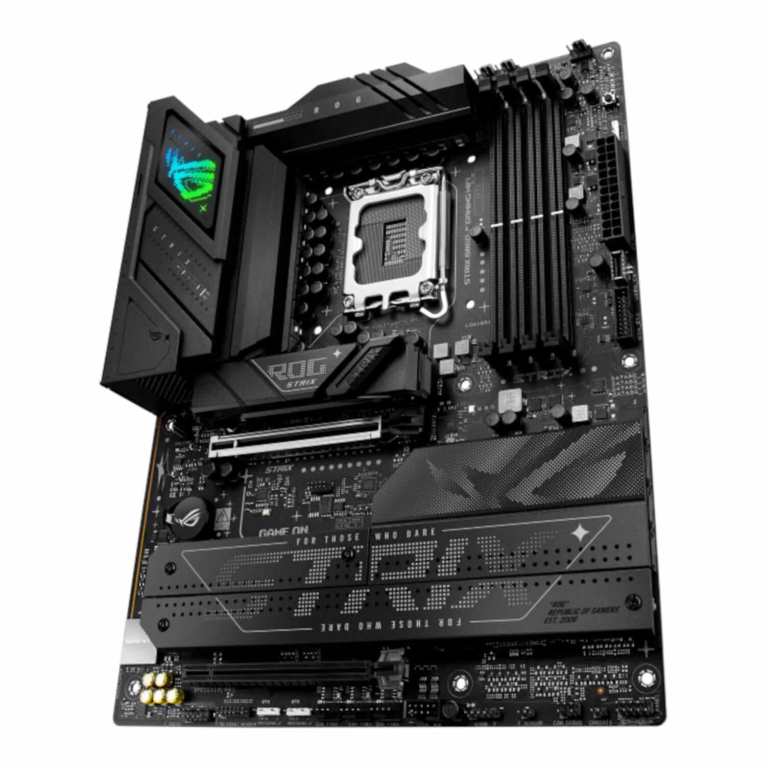 - Aesthetic ROG design – Sleek black PCB, RGB headers, and bold cybertext design